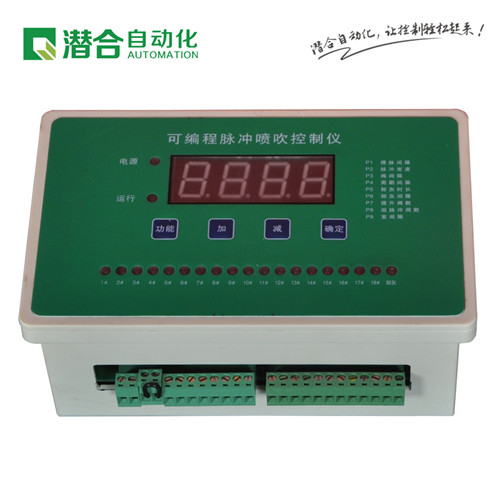 可編程脈沖控制儀可配接壓差信號輸入接口,當壓差可編程脈沖控制儀達到設定壓差值開關(guān)接通后,可編程脈沖控制儀開始順序噴吹。